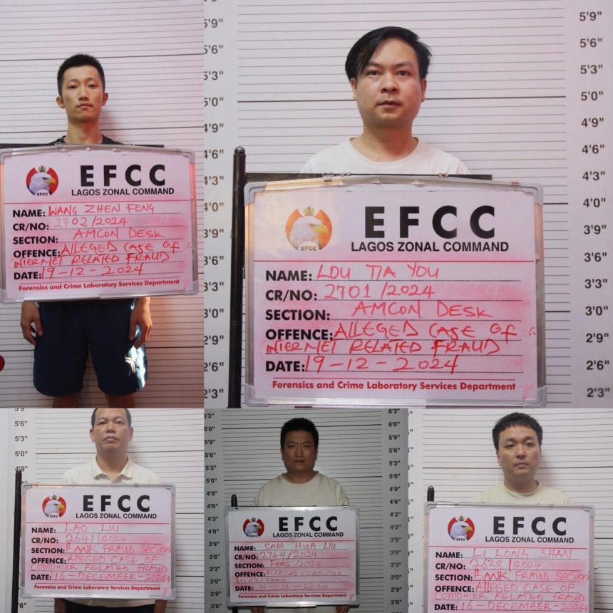 Justice Justice D. I. Dipeolu and Justice A. O. Faji of the Federal High Court sitting in Ikoyi, Lagos has convicted and sentenced six Chinese to one year imprisonment each for cyber-terrorism and internet fraud.